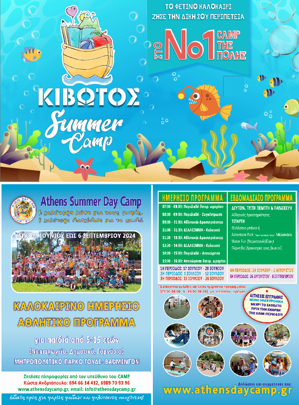 - Για εγγραφή ακολουθήστε τον σύνδεσμο:Κιβωτός summer camp στον Πύργο Βασιλίσσης στο Ίλιον,